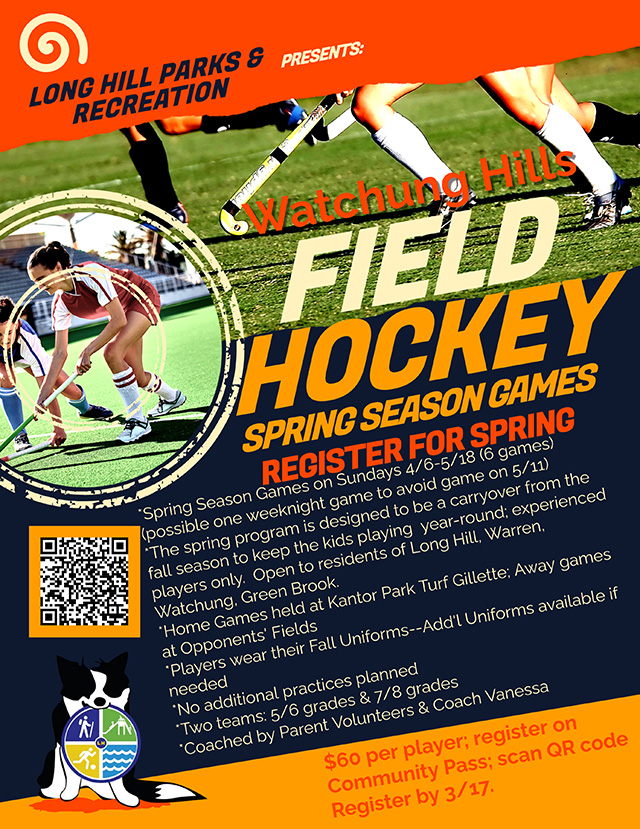 Posted February 11, 2025The Spring Field Hockey season is designed for Fall Field Hockey players to get some extra time playing games during the spring. Because many of these athletes are also participating in other spring sports, this program will consist only of Sunday games (6 games between 4/6 – 5/18). Note that we may have one weeknight game to avoid playing on 5/11. There will not be scheduled practices. Coach Vanessa Fowler will attend the games to coach the teams, and parent volunteers will assist on the sidelines. This program is open to the Watchung Hills area (Long Hill, Warren, Watchung, Green Brook). We will have a grades 5/6 team and a grades 7/8 team. Home games will be played at Kantor Turf Field in Long Hill, and Away games will be played on an opponent’s field. Opponents in the program are from the following towns: Livingston, Long Hill/Watchung Hills, Lakeland, Montville, Mt. Olive, Boonton, Northern Highlands, Ramsey.